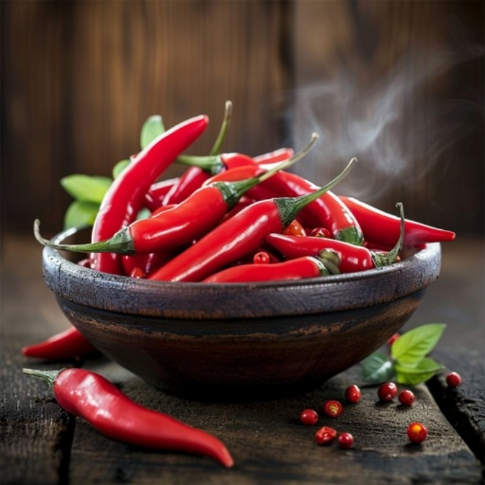 Chili Pepper is a vibrant spice known for its fiery heat and distinctive flavor.Widely used in cooking, sauces, pickles, and spice blends to add boldness to dishes.Rich in antioxidants and compounds that support metabolism and overall wellness.A staple in traditional remedies for its digestive and immunity-boosting properties.Enhances both flavor and aroma, making it a kitchen essential worldwide.Valued by chefs, home cooks, and herbal practitioners alike for its versatility.Combines culinary excitement with natural health benefits in every use.